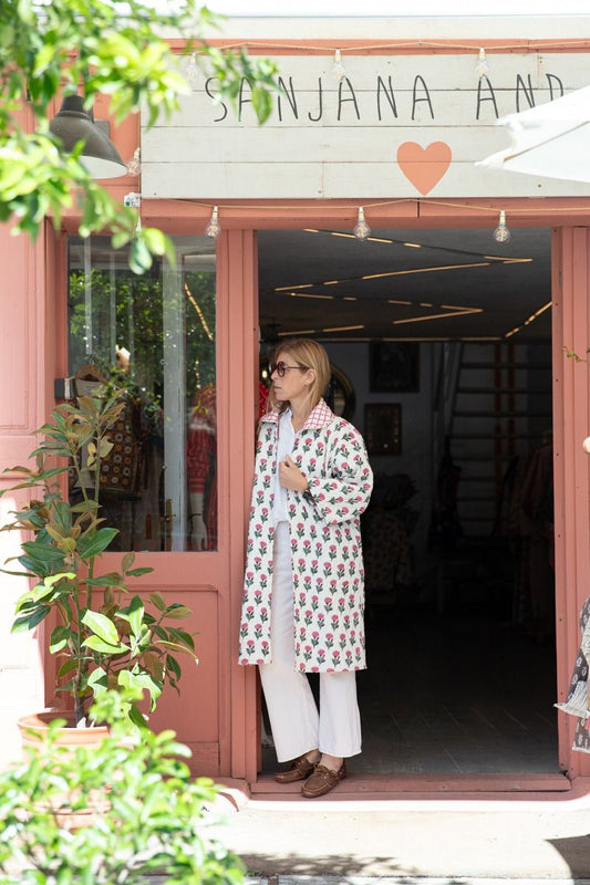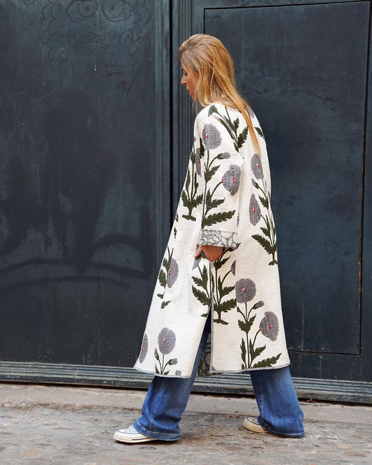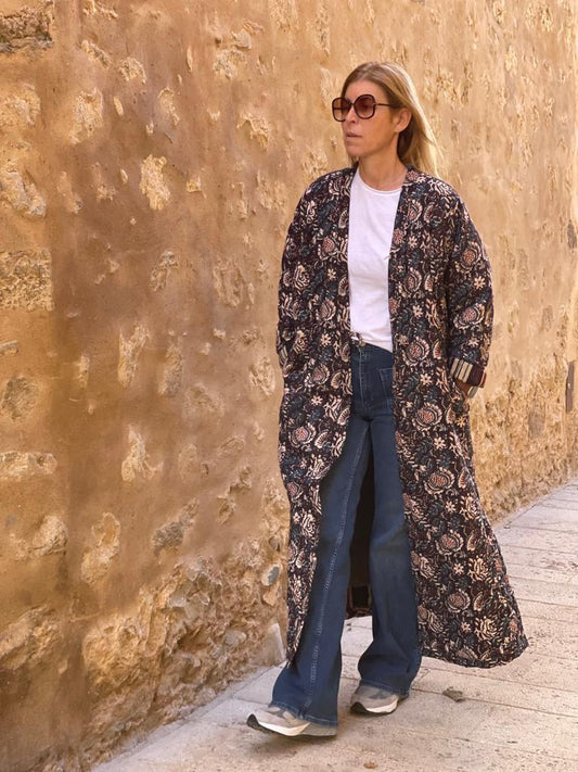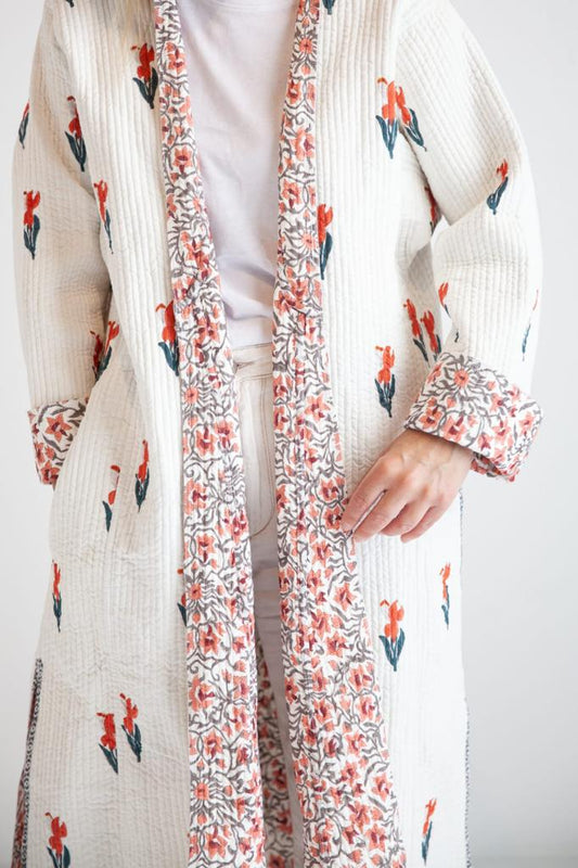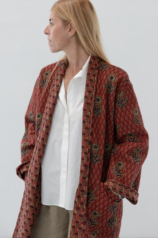 Block print reversible quilted kimono