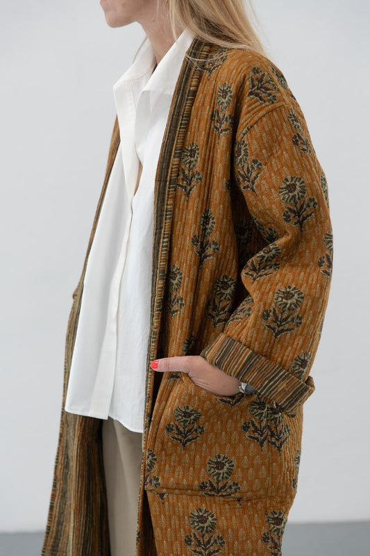 Block print reversible quilted kimono