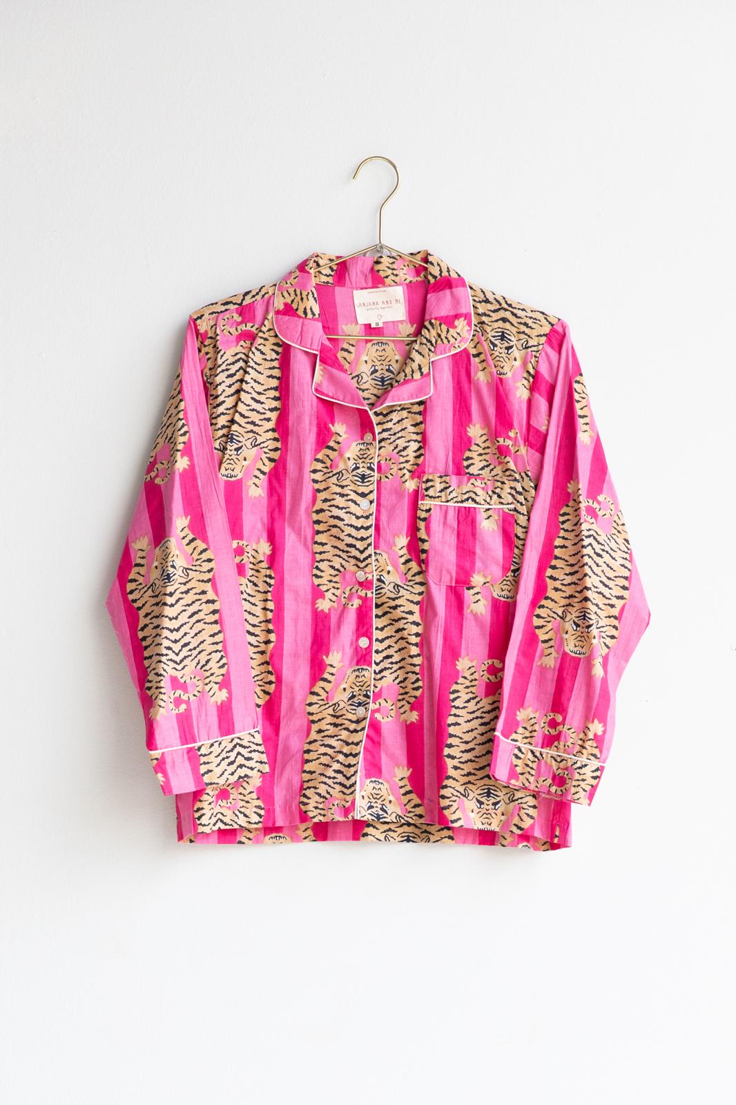 Pijama de algodón compuesto por un set de camisa, pantalón y bolsa a juego.