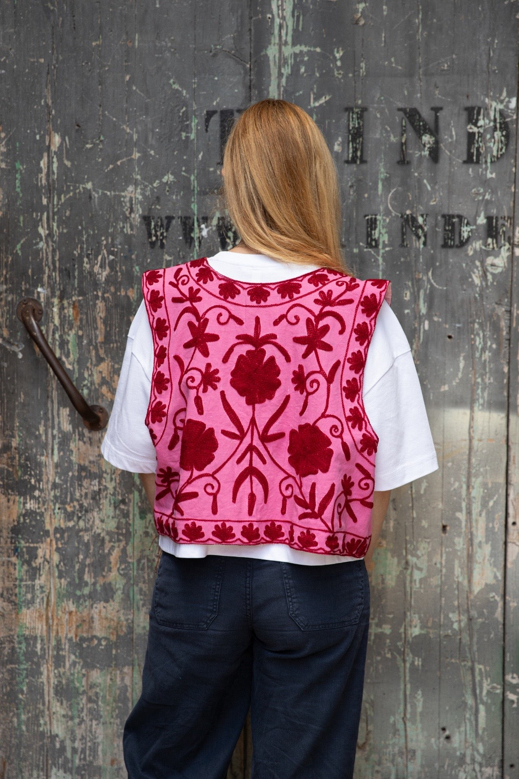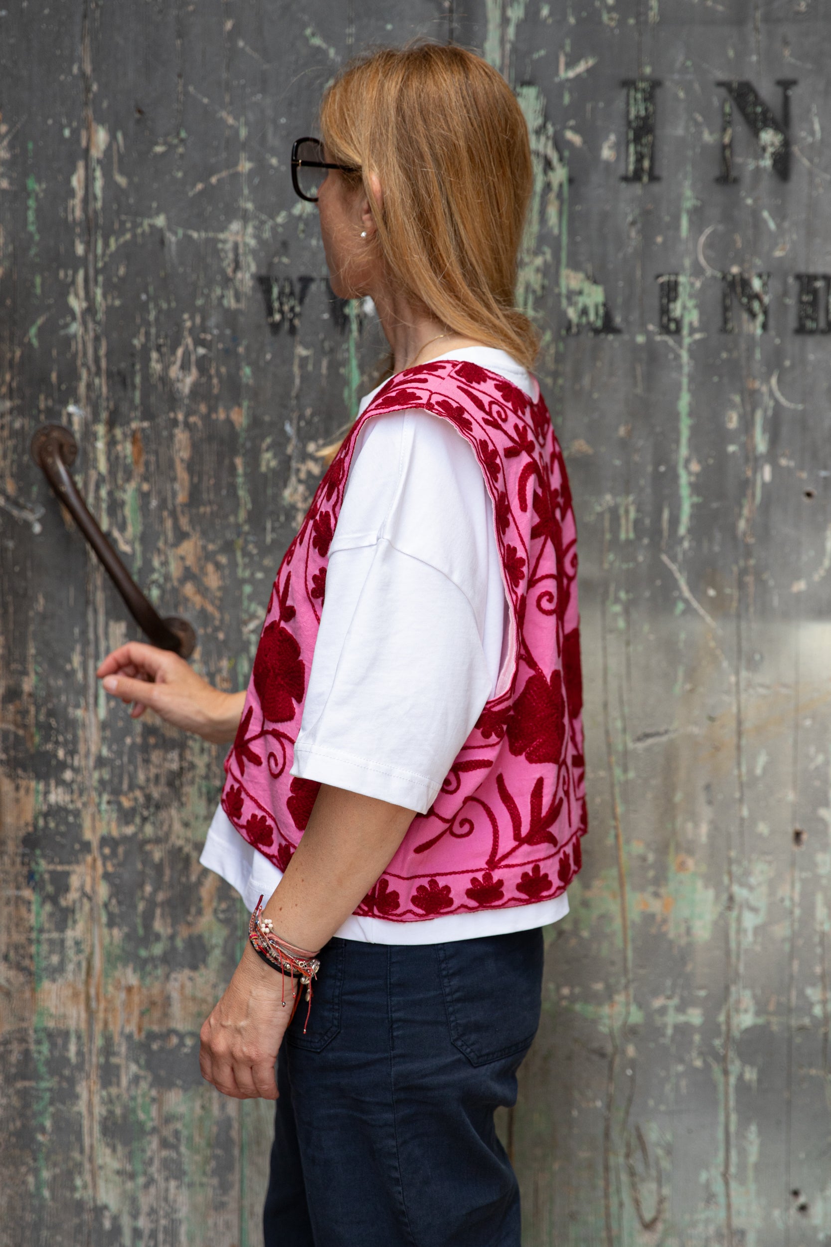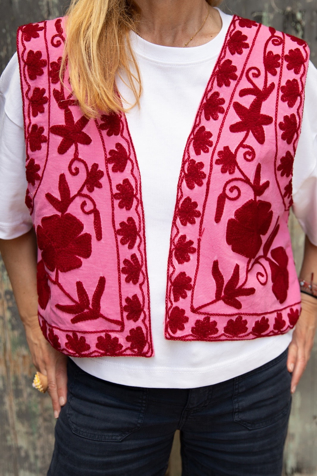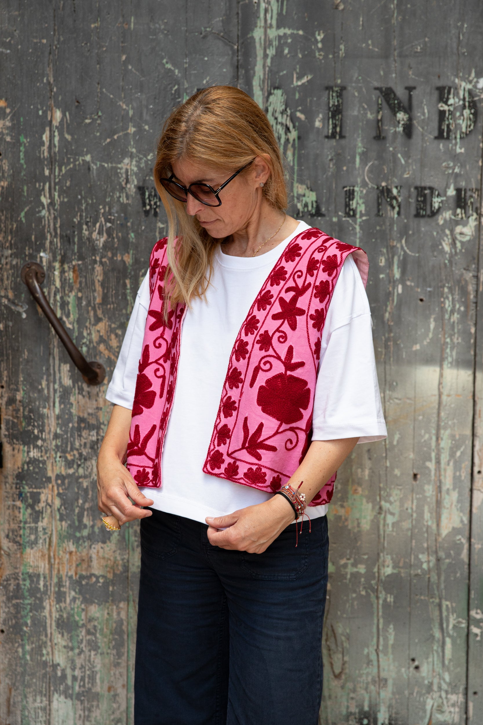 Chaleco corto de algodón con bordados suzanis. Talla única