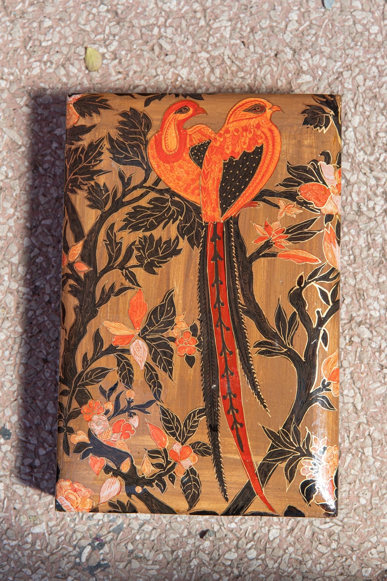 Caja de madera de pino hecha y pintada a mano. Forrada por dentro con terciopelo.