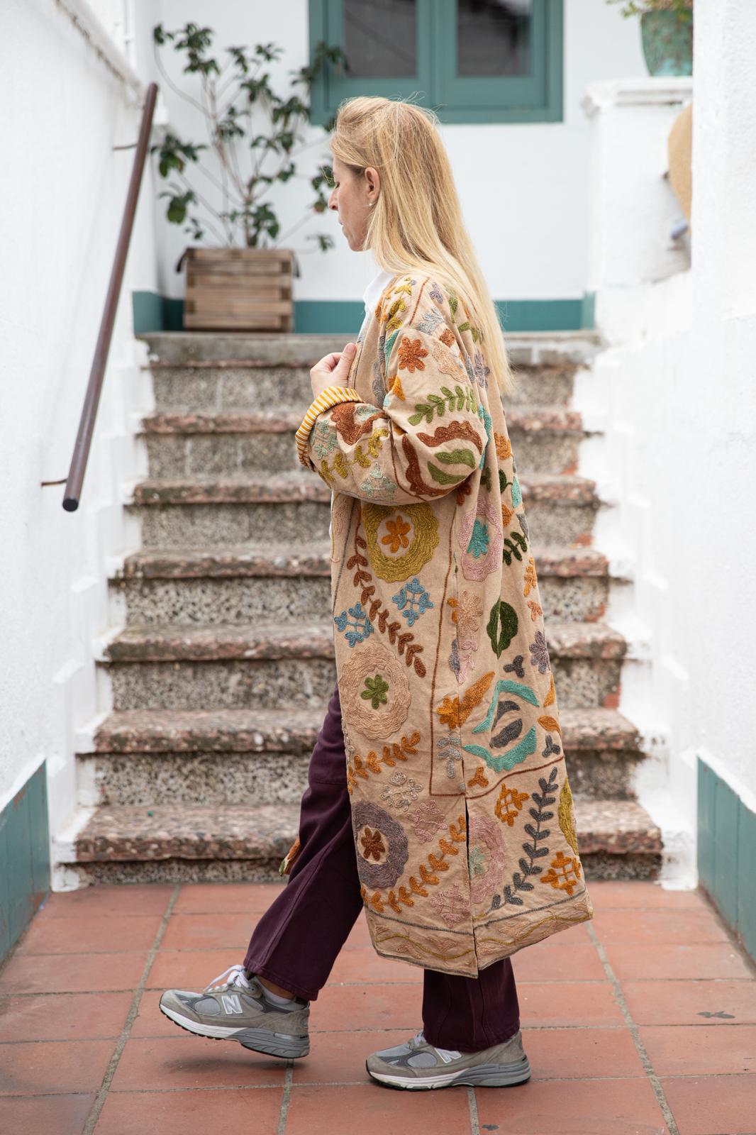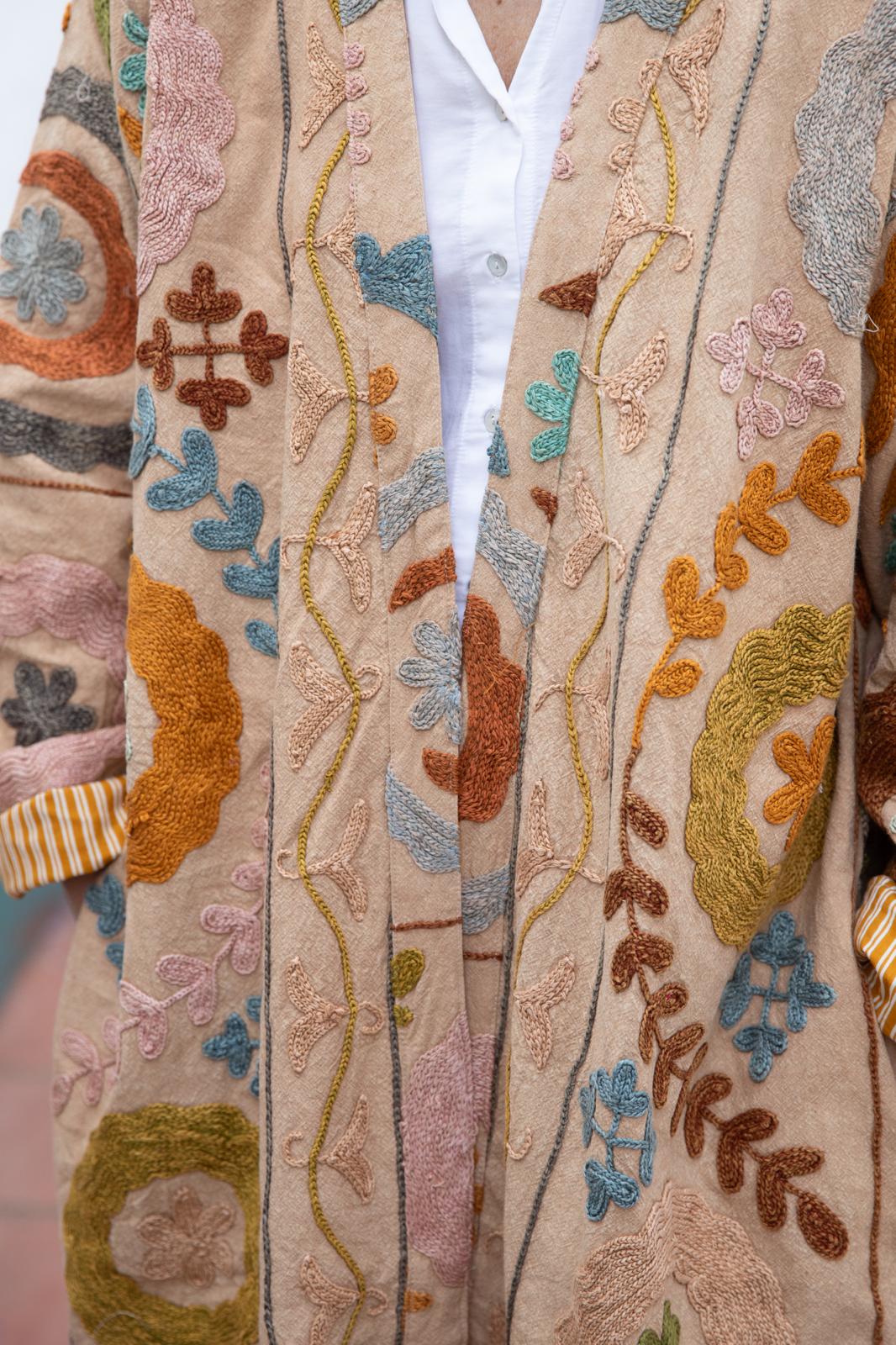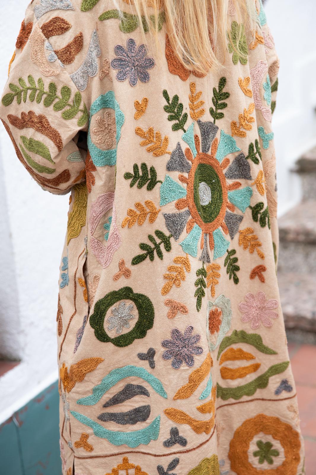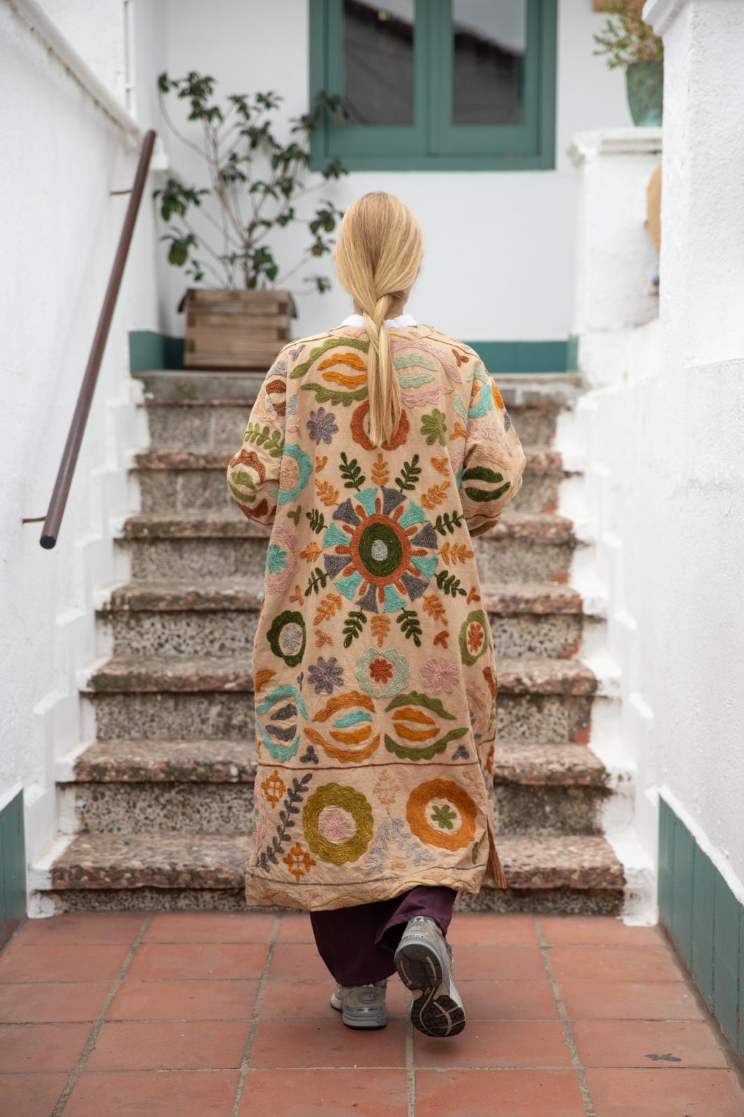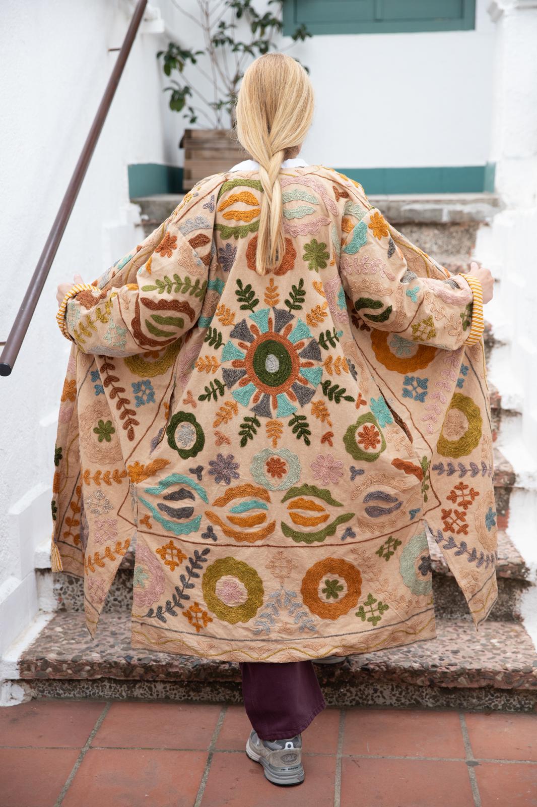 Suzani de algodón bordado a mano. Forrado. Talla única (M/L)