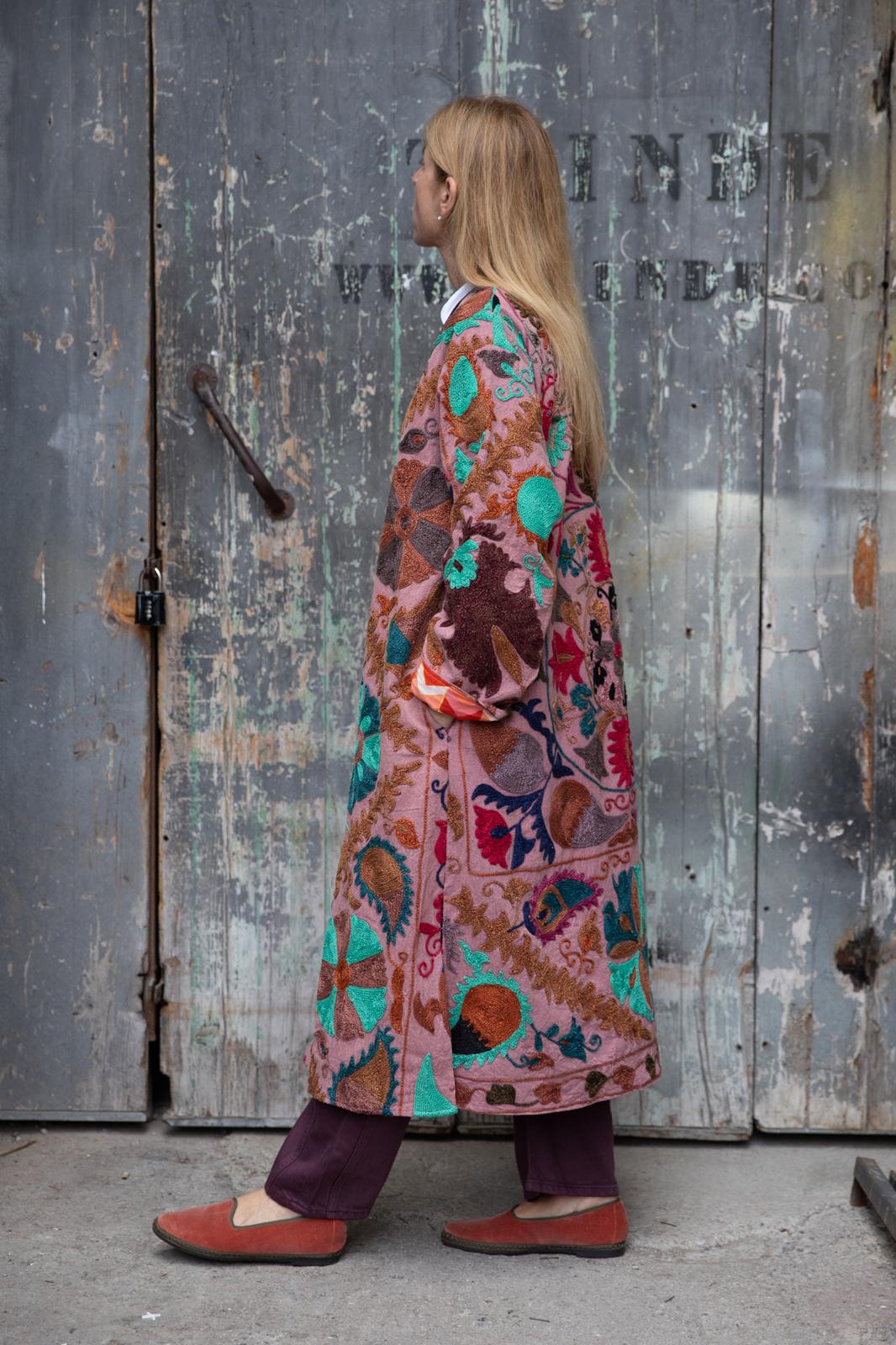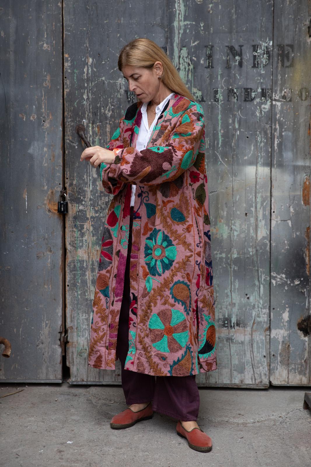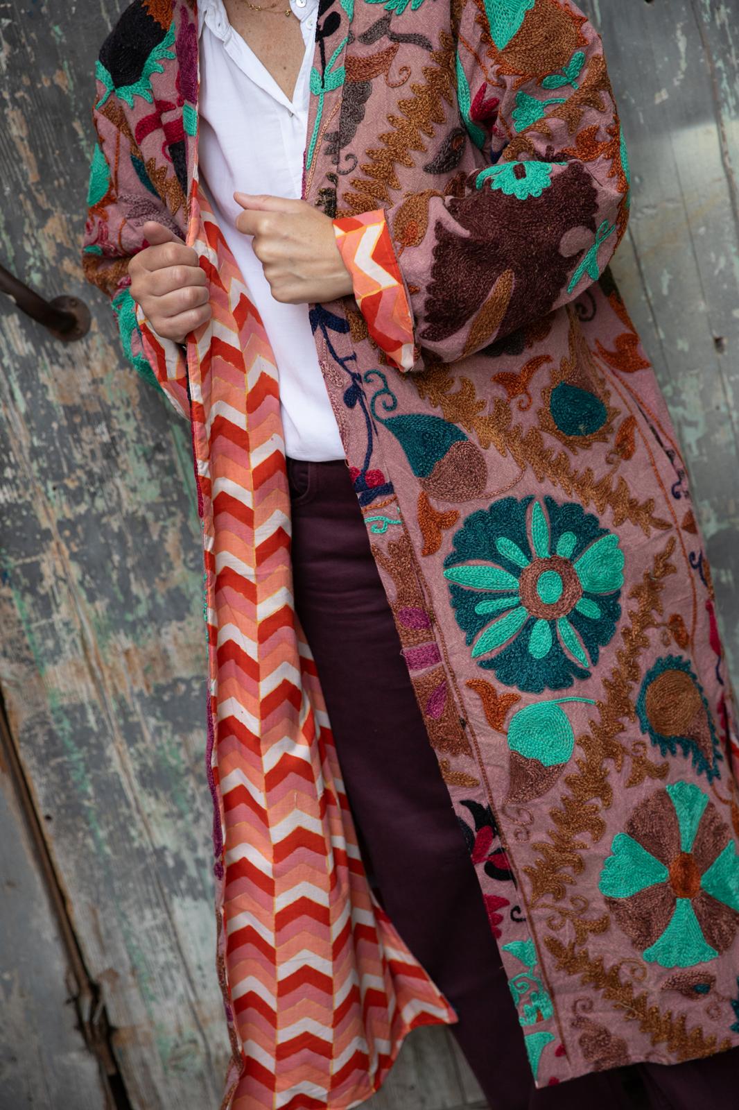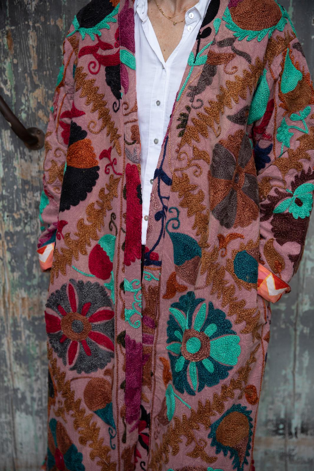 Suzani de algodón bordado a mano. Forrado. Talla única (M/L)