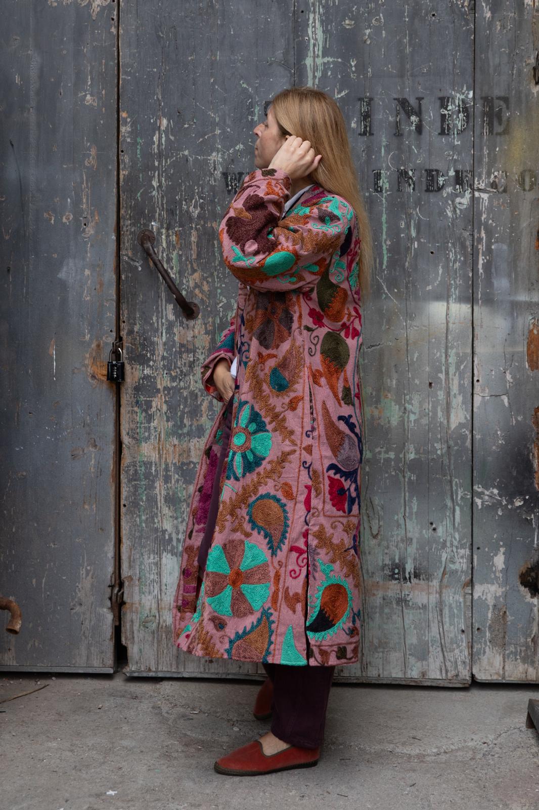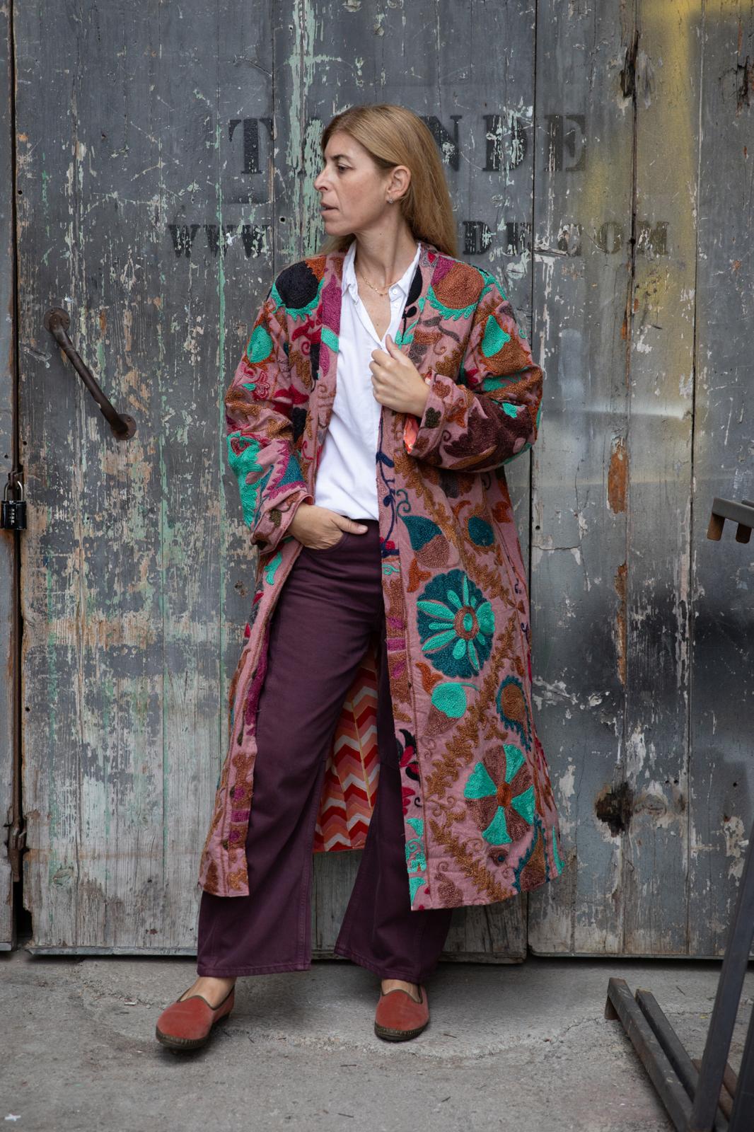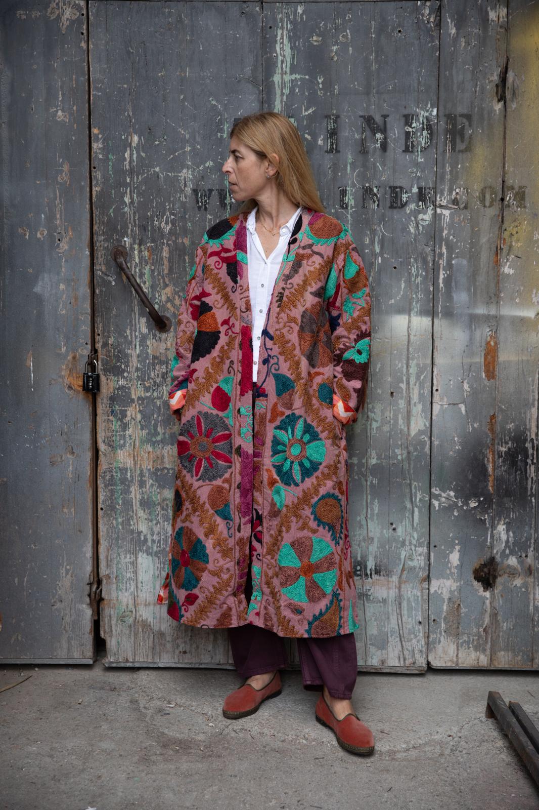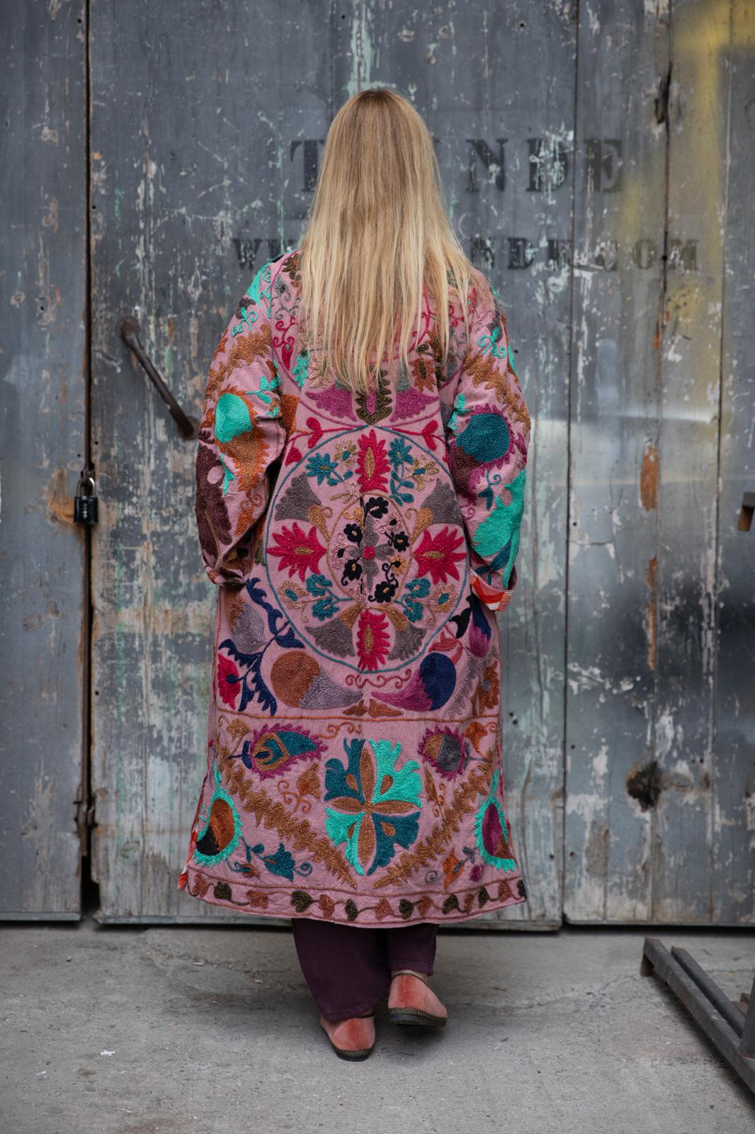 Suzani de algodón bordado a mano. Forrado. Talla única (M/L)
