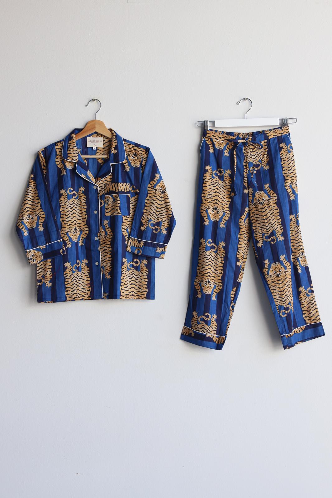 Pijama de algodón con bolsillos. Goma elástica detrás la cintura y delante ajustable.